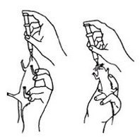 (3)豚鼠灌胃法:豚鼠体重<200S以下者,灌胃方法可与大鼠相同,体重>200g以上时,应用木制开[1器和导尿管灌胃。用左手拇指和示指架在豚鼠的颌下,两指头捏紧颌角,使口腔张开,身体自然挂下,其余三指抓住胸部,但不宜太紧。